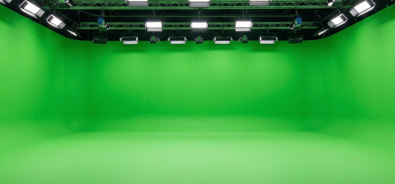 クロマキー対応のスタジオを探しましょう。壁の3面が緑色の幕で覆われ、床面も同色のカーペットが敷かれているタイプが理想。こうすると、合成時のエッジがきれいに出て、自然な仕上がりになります。また、黒幕や白背景に切り替えられるスタジオなら、1回のレンタルでいろいろな撮影が可能です。ただ、切り替えに少し時間が必要なの、事前に計画を立てておきましょう。